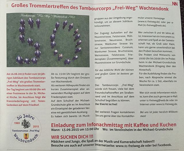 Bei allen Feierlichkeiten in Wachtendonk ab dem 80. Geburtstag und ab der Goldhochzeit, bringen wir Euch gerne ein kostenloses Ständchen!
