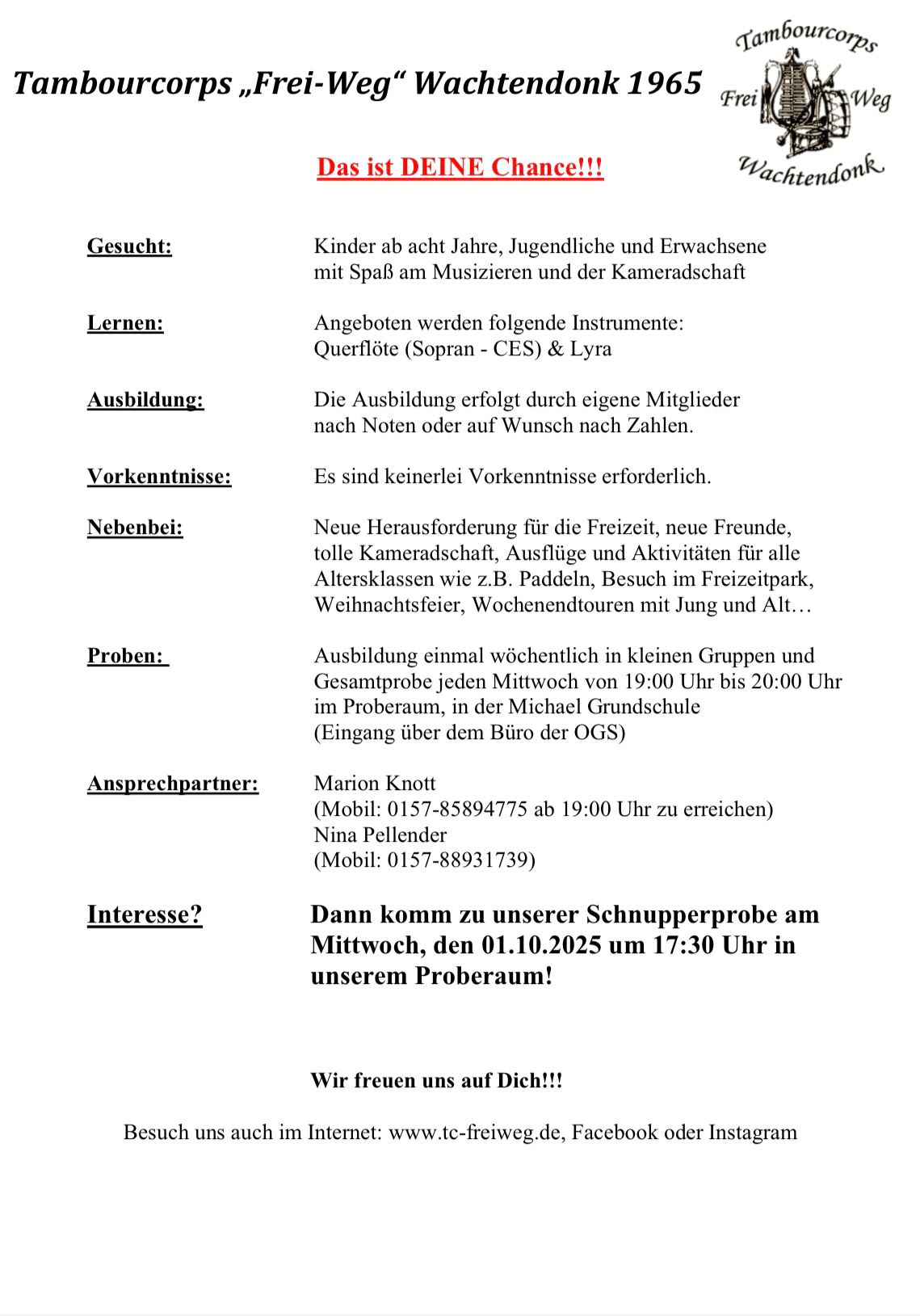 Komm vorbei und schnupper etwas Musikluft in toller kameradschaftlicher Atmosphäre.